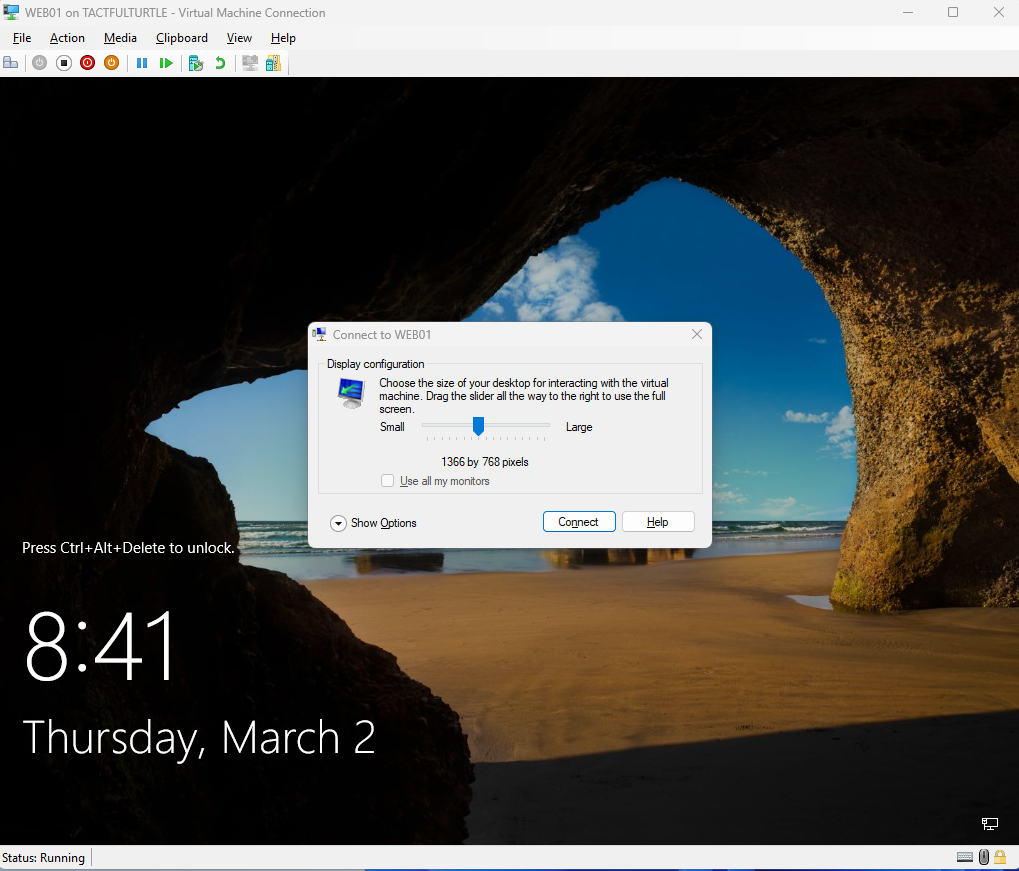 You can adjust the desktop space, but I simply accepted the default 1366×768 windowed desktop.