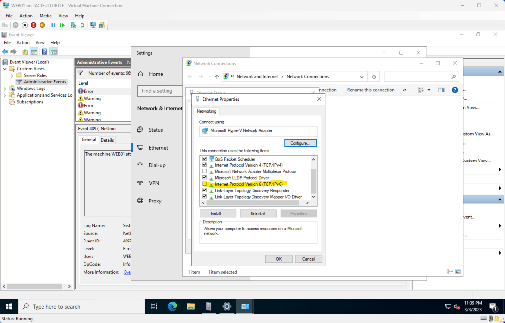 Here is the event log that started me down this path…what do you mean it can’t find domain WIRELESSHOBO? Well, it is defaulting to IPV6 and can’t find it.