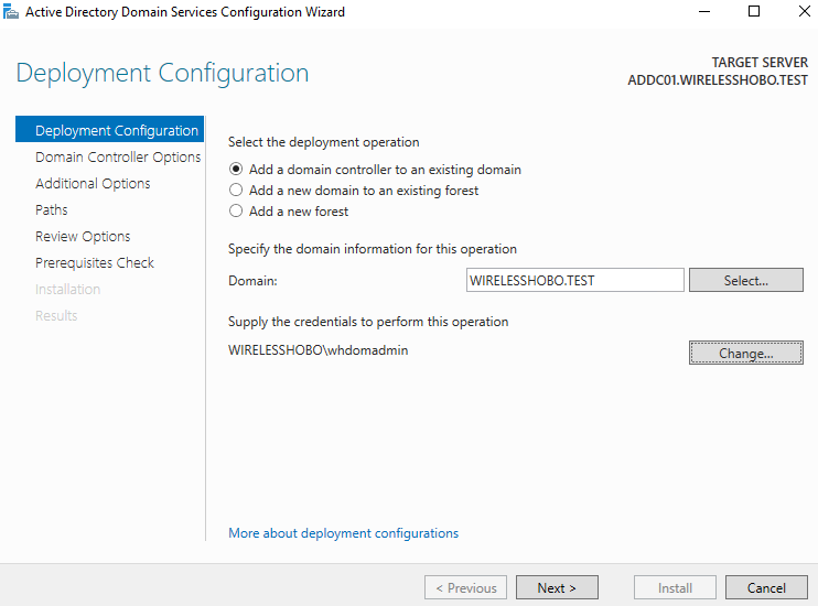 - I followed the previous blog to get a new server, ADDC01, stood up. This server will replace DC01.